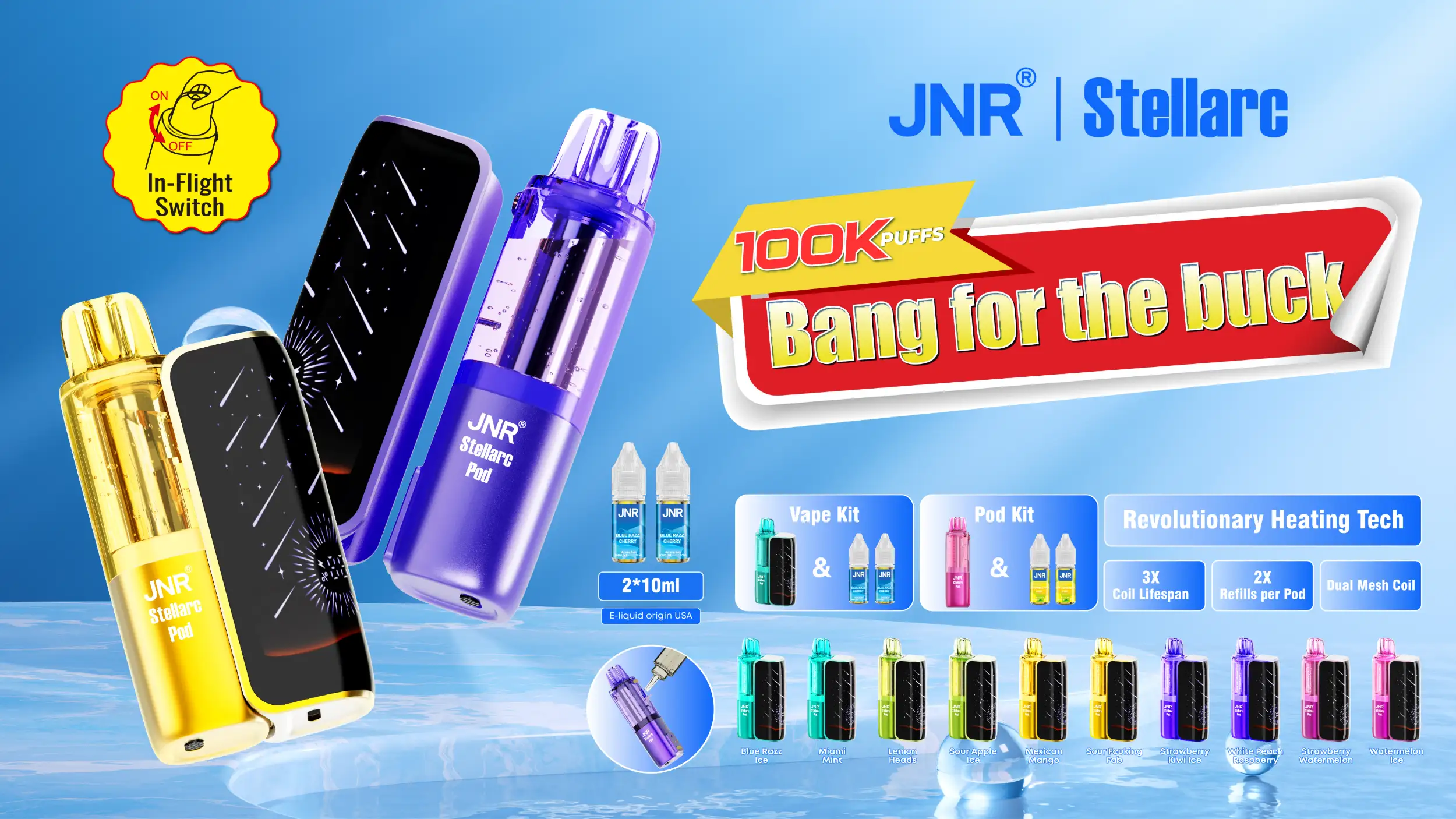 Blue Razz ice | JNR Vape Stellarc 100K Puffs Kit - Refillable & Replaceable Pod Vape